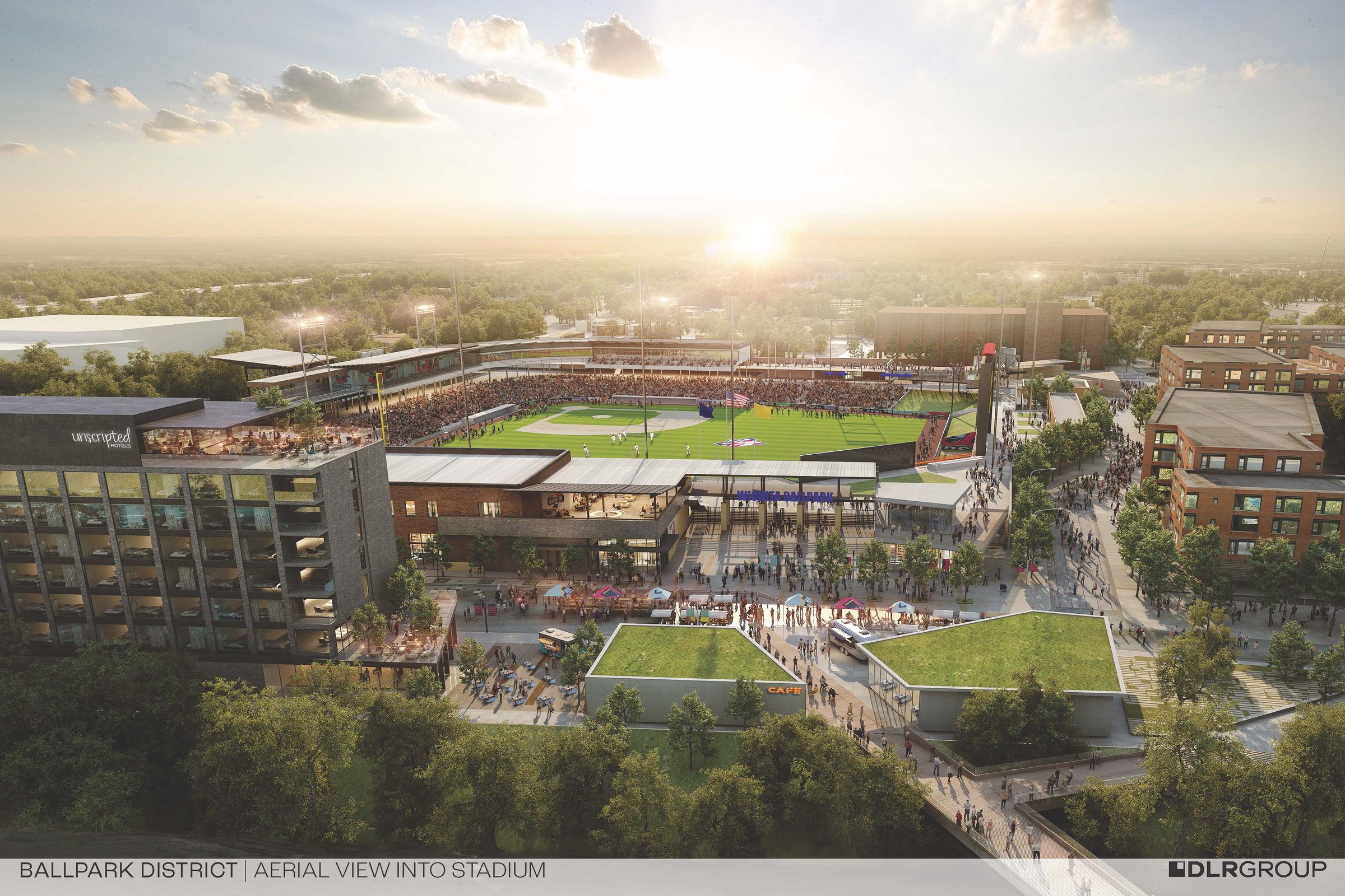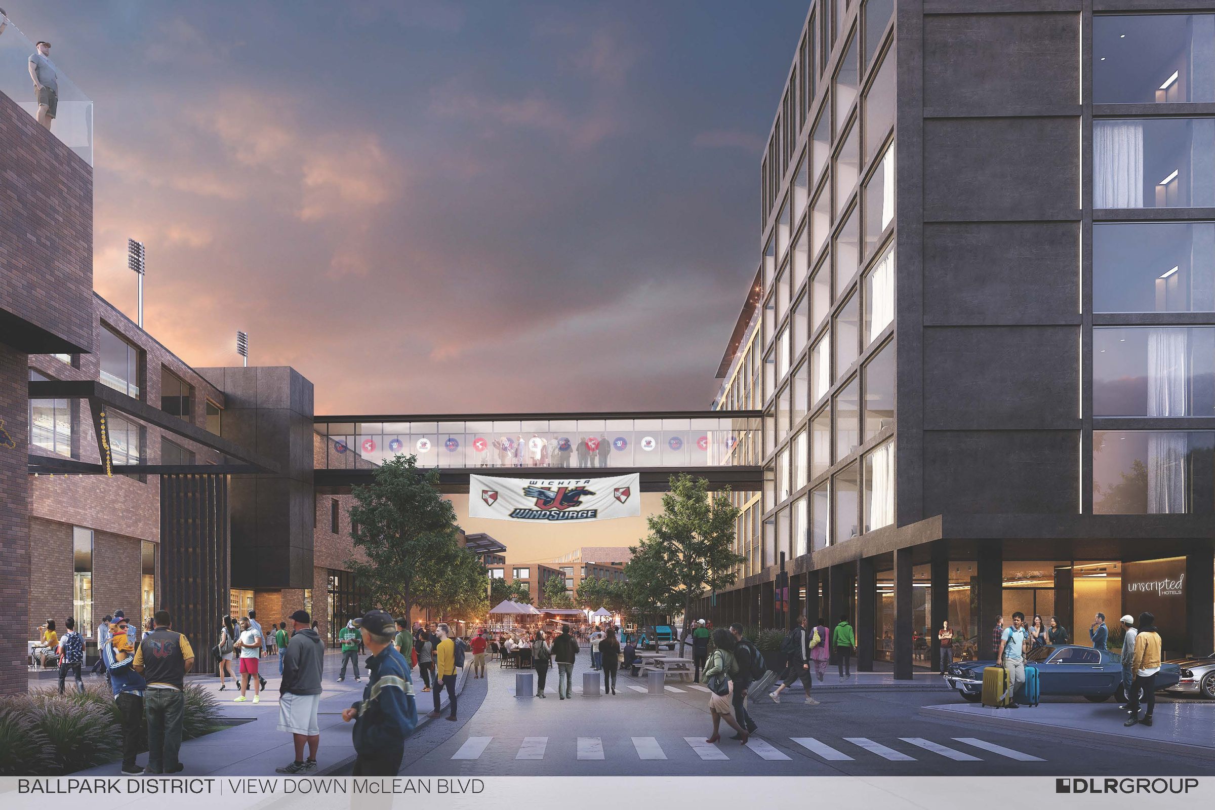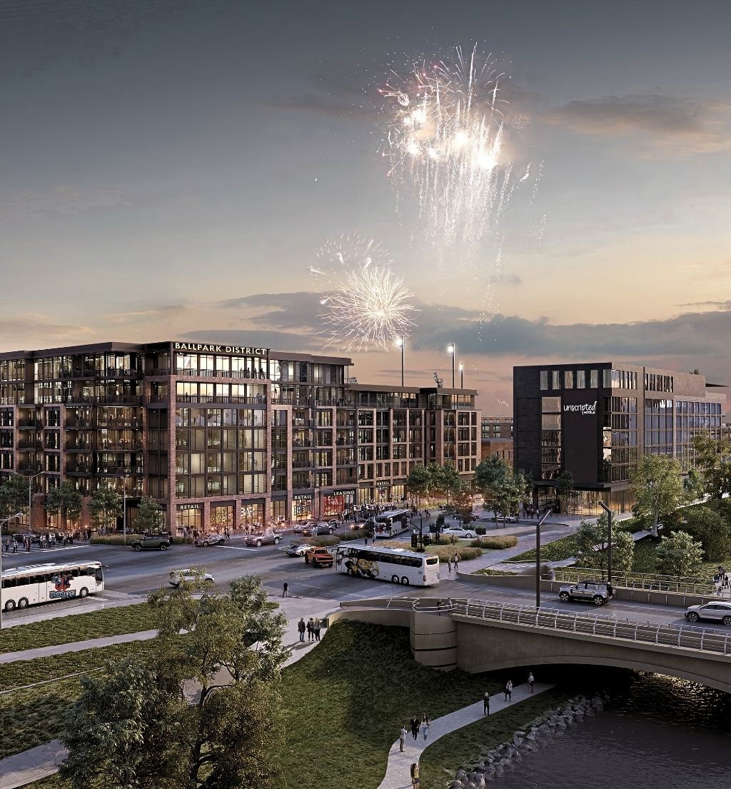 Ballpark District in Wichita will include an expansive indoor-outdoor rooftop bar and lounge concept with sweeping views of the downtown skyline and Riverfront Stadium, along with a signature restaurant on the street level, transforming the section of S. McLean Blvd between Maple and Texas Streets into a communal gathering place for visitors and Wichitans alike. Setting a new benchmark for boutique hospitality in the Midwest, Unscripted Wichita will debut as the hospitality centerpiece and anchor of the Ballpark District, Wichita’s highly anticipated mixed-use development project. The Ballpark District will feature unprecedented views, tremendous visibility, and other desirable amenities to include shared fitness and conference space, private patios, high efficiency building design, and electric car charging stations.