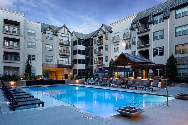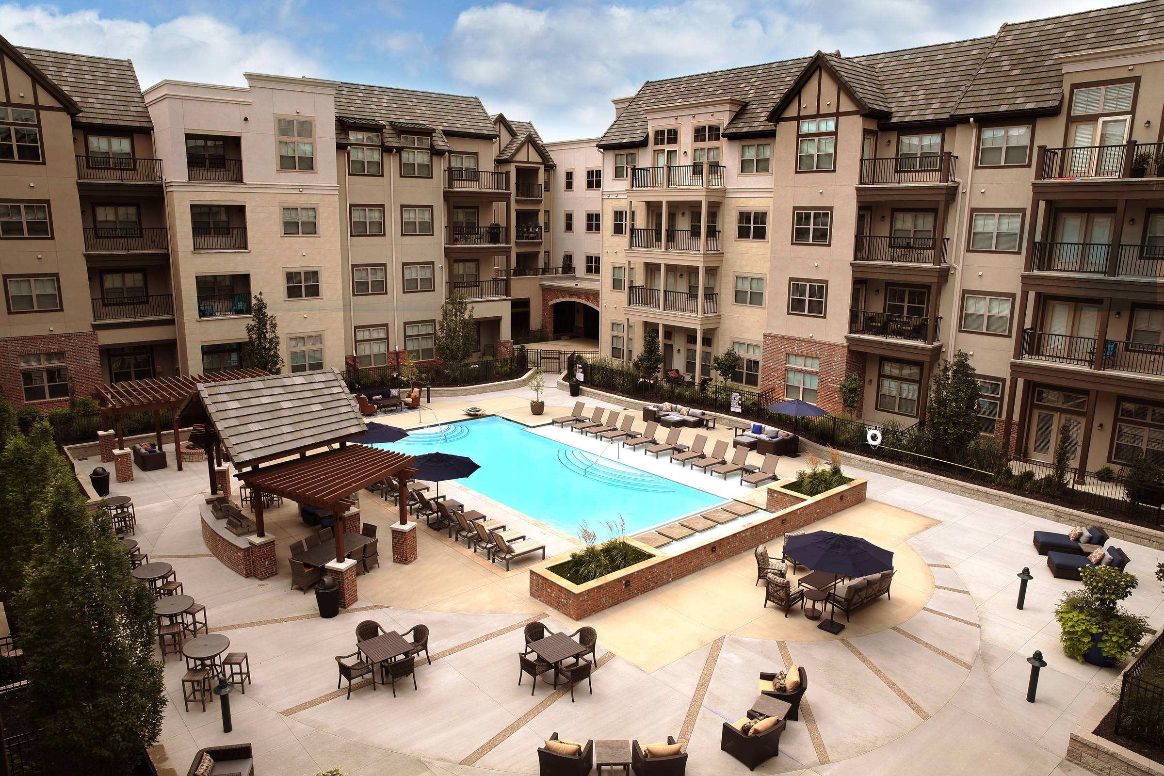 Nestled in suburban Kansas City’s, Mission Farms development, which includes many restaurants, retail and office uses. Four story garage wrap comprising 132 residences and 7 townhomes on Mission Farms Lake.