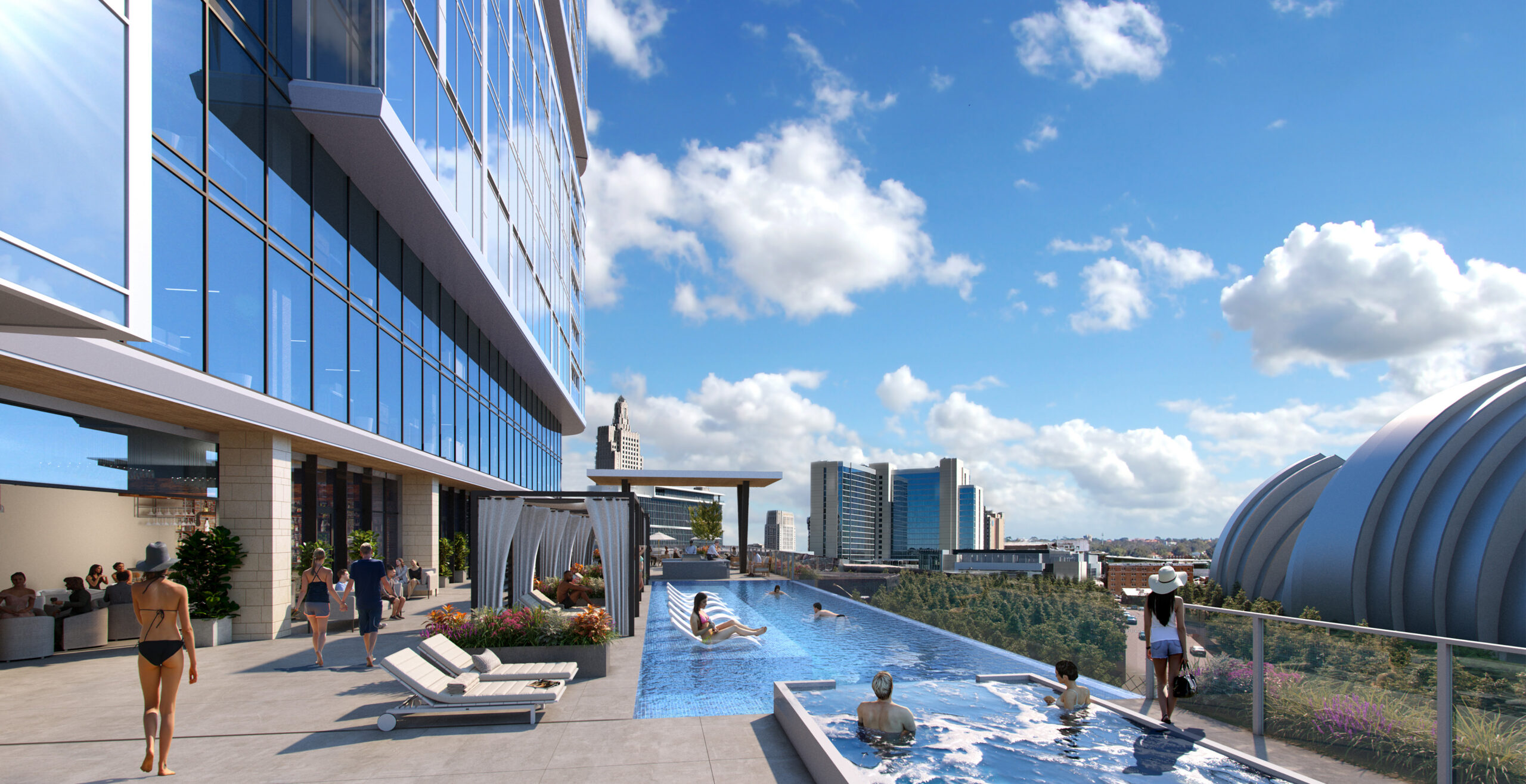 The $207.9 million tower delivers 392 residences, including studios, one-, two-, and three-bedroom layouts with penthouses crowning the upper levels, plus a rooftop pool deck with panoramic city views. Positioned between Downtown, the Crossroads, and the Westside at 16th and Broadway, residents enjoy walkable access to the Kauffman Center, dining, and arts while taking advantage of prime I-35 visibility. Designed by Hoefer Welker as the first phase of a multi-parcel development, Encore is set to break ground in late 2026 and welcome residents in 2029. A collaboration between EPC Real Estate Group, Dan Carr, and VeLa Development Partners.